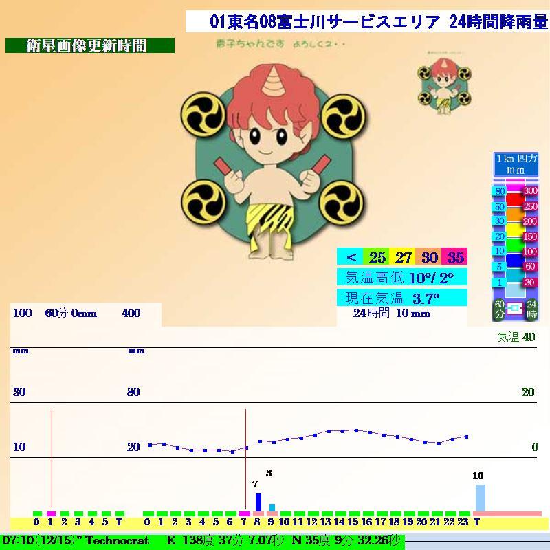 東名高速 8 富士川 SA/PA 24時間降雨量・気温  Top